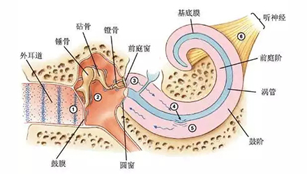 <span style="font-size:16px;"> 人體各器官功能取決于其生理結構,高頻陡降性聽力損失最為常見主要與耳部各個解剖部位有關。</span></p><p><span style="font-size:16px;"> 1、外耳的漏斗狀結構和彎曲“S”型耳道,此結構使得外界的聲學物理發生了變化。</span></p><p style="text-align: center;"><span style="font-size:16px;"><img src="/upfiles/201809030156391756.jpg" alt="" /><br /></span></p><p><span style="font-size:16px;"> 如上圖所示,人類耳廓及耳道對不同頻率段的聲音增益變化可以看出:在頻率2kHz-4kHz范圍耳道對聲音增益最大。研究表明噪聲引起的聽力損失常常位于噪聲頻率之上的一倍頻率程處,工業噪聲位于低中頻范圍內相對恒定,外耳道自然共振峰為2kHz-4kHz,故最容易導致4kHz-6kHz頻率范圍內聽力損失。這也就是為什么噪聲性耳聾起初聽力損失常常從4KHz左右開始,逐漸損害影響至更好頻率。</span></p><p><span style="font-size:16px;"> 2、耳蝸螺旋狀結構</span></p><center><span style="font-size:16px;"><img alt="" src="/upfiles/201809030156464845.jpg" width="440" height="250" /></span></center><p></p><p><span style="font-size:16px;"> 聲音從外耳道經聽骨鏈傳至內耳前庭窗,懸浮在耳蝸內的基底膜剪切運動引起其上的毛細胞電位變化,傳至大腦皮層感受聲音。</span></p><p><span style="font-size:16px;"> 耳蝸結構類似蝸牛呈螺旋結構,約2.5圈-2.75圈。聲波在基底膜上的傳播方式,是按物理學中的行波原理進行的,亦即行波學說(travellingwavetheory)。基底膜的最大振幅部位與聲波的頻率有關,亦即每一種頻率的聲波在基底膜上不同位置有一相應的最大振幅部位:高頻聲引起的最大振幅部位在蝸底靠近前庭窗處,低頻最大振幅靠近蝸頂,中頻在中間部分發生共振。由此可知,聲音從高頻到低頻的傳播途徑均需底周基底膜的振動,即高頻段的基底膜相對容易疲勞。同時耳蝸底周基底膜毛細胞含有比頂端毛細胞更低的抗氧化酶,故氨基糖苷類抗生素(慶大霉素、卡那霉素、鏈霉素等)耳毒性藥物出現的聽力損失都為陡降型聽力曲線。</span></p><p><span style="font-size:16px;"> 3、聽神經音頻分布</span></p><center><span style="font-size:16px;"><img alt="" src="/upfiles/201809030156516291.jpg" width="440" height="250" /></span></center><p></p><p><span style="font-size:16px;"> 聽神經分布與耳蝸基底膜螺旋結構一脈相承,感受低頻的神經位于中心,感受高頻的聽神經位于外周。外傷、缺血缺氧、皰疹病毒等理化環境的變化首先影響到高頻。</span></p><p><span style="font-size:16px;"> 更多詳情請登錄m.padesign.cn。</span></p>" />