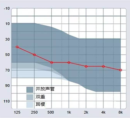 <span style="font-size:16px;"> 選擇助聽器時聽力損失者首先考慮的是“聽得清不清楚”——這就涉及到選擇何種放大線路,是決定型號的主要因素;其次考慮“美觀嗎?舒服嗎?”——這就涉及到外觀選擇,是決定型號的次要因素。</span></p><p><span style="font-size:16px;"> 但聽力損失者的喜好不一定符合聽力需求,驗配師還需要運用專業(yè)的聽力學(xué)知識和豐富的經(jīng)驗分析“功率夠不夠?余量有多少?是否有禁忌癥?”以判斷選擇的型號是否符合聽力損失者的聽力狀況,幫助他們選擇。</span></p><p><span style="font-size:16px;"> 一般情況下,驗配師都會推薦比聽力損失曲線多出約10-20分貝余地的助聽器型號給聽力損失患者。比如,聽力損失為90分貝,則應(yīng)推薦100-110分貝的助聽器型號以防止一旦聽力損失患者聽力下降后,助聽器無多余增益可調(diào)的情況出現(xiàn)。</span></p><p><span style="font-size:16px;"> 但受到聽力損失患者對助聽器外觀的限制,往往不能達到這個理想狀態(tài),有可能只能選擇95分貝,甚至是90分貝功率的助聽器。</span></p><p><span style="font-size:16px;"> 在聽力曲線接近“參考驗配范圍”甚至略微超出的情況下,驗配師選擇助聽器功率時就會猶豫:聽力曲線超出驗配范圍一點行不行呢?雙耳驗配是否可以超出多一點?把試聽的大功率耳背機調(diào)小一些能否代表小功率定制機的效果?</span></p><p><span style="font-size:16px;"> 為了解釋這個問題,需要理解最大輸出能力(飽和聲壓級)和最大放大能力(滿檔聲增益)這2個判斷助聽器大小標(biāo)準(zhǔn)的意義。</span></p><p><span style="font-size:16px;"> 測量助聽器用的是dB SPL(Sound Pressure Level聲壓級)單位,是聲音真實的強度級別,最小是0。聽力圖是以dB HL(Hearing Level聽力級)為單位的,聽力級選用18-25歲的正常聽力成人進行測聽,將這些人在各個頻率處聽到的最小聲壓級定為0 dB HL,負數(shù)代表聽力比一般人好。dB HL和dB SPL之間可以進行轉(zhuǎn)換,各頻率差值不同:</span></p><p><span style="font-size:16px;"> </span></p><center><span style="font-size:16px;"><img alt="" src="/upfiles/201811070140306681.png" width="440" /></span></center><p></p><p><span style="font-size:16px;"> 以下圖所示的平均聽力損失62.5dB HL為例,白色代表能聽到的范圍,灰色代表聽不到的范圍。</span></p><p><span style="font-size:16px;"> </span></p><center><span style="font-size:16px;"><img alt="" src="/upfiles/2018110701403495.png" width="440" /></span></center><p></p><p><span style="font-size:16px;"> 價格單中矩陣119/60助聽器的參考驗配范圍一般寫100dB HL左右,但從下圖驗配范圍陰影看1000Hz處陰影只到85dB HL,用戶使用這款機器究竟能聽到什么范圍的聲音呢?</span></p><p><span style="font-size:16px;"> </span></p><center><span style="font-size:16px;"><img alt="" src="/upfiles/201811070140398624.png" width="440" /></span></center><p></p><p><span style="font-size:16px;"> 在軟件輸出圖中,因輸出圖的單位是dB SPL,聽力圖的單位是dBHL,通過上文提到的單位間轉(zhuǎn)換,所以輸出圖中代表聽力圖的曲線會有變化。圖中白色部分是助聽器的輸出,以及用戶也能聽到的范圍。飽和聲壓級和滿檔聲增益是曲線,矩陣“119/60”測量的是1.6kHz處的數(shù)值,接下來我們來分析下圖中紫色方框內(nèi)的范圍。</span></p><p><span style="font-size:16px;"> </span></p><center><span style="font-size:16px;"><img alt="" src="/upfiles/201811070140438218.png" width="440" /></span></center><p></p><p><span style="font-size:16px;"> 藍點剛好是最大輸出和用戶不舒適閾的重合點,大約123dB SPL,紅點是聽閾大約76dB SPL,用戶可以聽到助聽器輸出的76-123 dB SPL之間的聲音。</span></p><p><span style="font-size:16px;"> 輸出-增益=輸入</span></p><p><span style="font-size:16px;"> 聽閾76dB SPL -滿檔聲增益60 dB =16dB SPL</span></p><p><span style="font-size:16px;"> 助聽器可以把一個最小16dB SPL的聲音放大到用戶聽閾,換句話說用戶在1.6kHz處能聽到16dB SPL至123dB SPL之間的聲音,當(dāng)然這只是理論數(shù)據(jù),實際輸出時還要考慮壓縮降噪等等對聲音的處理和過濾。</span></p><p><span style="font-size:16px;"> 同樣的方法計算一下矩陣113/40助聽器能聽到的范圍。最大輸出就算113 dB SPL,聽閾76dB SPL -滿檔聲增益40 dB =36dB SPL,因此,能聽到36dB SPL至113dB SPL之間的聲音。比矩陣為119/60的助聽器聽到的聲音少。</span></p><p><span style="font-size:16px;"> 現(xiàn)在再來分析前文提出的問題——“聽力曲線超出驗配范圍一點行不行呢?”,例如顧客1kHz處聽閾85dB HL(92dB SPL)。</span></p><p><span style="font-size:16px;"> </span></p><center><span style="font-size:16px;"><img alt="" src="/upfiles/201811070140513566.png" width="640" /></span></center><p></p><p><span style="font-size:16px;"> 不考慮壓縮、清晰度、舒適度等等因素僅僅粗略計算一下,使用113/40的助聽器能聽52-113 dB SPL,如果用戶覺得不滿意想換功率大一點的,那就要與用戶溝通“什么樣的聲音不滿意”:小聲聽得不清楚可以更換113/50的助聽器能聽42-113 dB SPL;要是覺得響聲不夠大就需要使用118/50的助聽器能聽42-118 dB SPL。</span></p><p><span style="font-size:16px;"> 如果聽力圖超出驗配范圍5分貝以內(nèi),可以通過耳道共振效應(yīng)或雙耳驗配優(yōu)勢補償,但如果超出較多,則會出現(xiàn)上述例子中說到的,助聽器佩戴者可能會覺得某些聲音聽得不滿意。</span></p><p><span style="font-size:16px;"> Q:把試聽的大功率耳背機增益調(diào)小能否代表小功率定制機的效果?</span></p><p><span style="fo