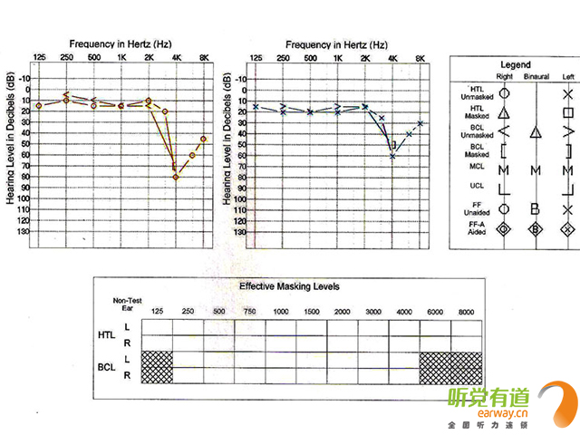 <span style="font-size:16px;"> 首先聽覺有道跟大家解釋一下純音測聽的定義以及臨床意義。純音測聽包括氣導聽閾測試(AC)和骨導聽閾測試(BC),以耳機及骨導振子給聲,反應受試者在安靜環境下能夠聽到的各個頻率的最小聲音的聽力級(氣導頻率范圍125-8000Hz,骨導250-4000Hz)。它是目前能準確反映聽敏度的主觀行為測試方法之一,在臨床上是最基本最重要的聽力檢查方法。</span></p><p><span style="font-size:16px;"><br /></span></p><p style="text-align: center;"><span style="font-size:16px;"><img src="/upfiles/201803010200415958.jpg" align="middle" alt="" /><br /></span></p><p style="text-align: center;"><span style="font-size:16px;"><br /></span></p><p><span style="font-size:16px;"> 先整體看一下聽力圖,它的橫坐標是純音的頻率,縱坐標表示的是聽力級(單位為db HL),從上往下看數字是變大的。0表示聽力零級,簡單地說就是科研人員測了很多聽力正常男女的聽力,以他們能聽到的最小聲音作為聽力零級。所以如果你的聽力是正常的話,聽力圖上的閾值曲線應該在零附近浮動,如果你聽力超常,那就在0以上也就是為負值了。如果你聽力下降,那線就往下走,越往下就說明聽力損失得越多。從生活常識上理解,所謂聽閾聽閾,閾值越低表示你能聽到越小的聲音,聽力就越好,閾值越高,聽力越差。</span></p><p><span style="font-size:16px;"> 接著說一下聽力圖上的圈圈叉叉代表的意思。叉叉表示左耳的氣導聽閾,圈圈表示右耳氣導,開口向左的尖括號表示左耳骨導,開口向右的表示右耳骨導。旁邊的masked表示加掩蔽之后的聽力。</span></p><p><span style="font-size:16px;"> 為什么要加掩蔽呢?舉個例子:你右耳聽力比左耳好,當你左耳給聲強度很大,會出現你左耳其實沒聽見但右耳偷聽到了的情況,這時你就會反應,但是這時你的反應能代表左耳的聽閾嗎?肯定比你實際聽閾要好,所以測聽人員會在你右耳加噪聲,不讓你右耳偷聽左耳的聲音,這樣測出來的左耳聽力稱掩蔽之后的聽閾。左耳掩蔽之后的氣導用小正方形來表示。同理,右耳掩蔽用小三角形表示。骨導也需要掩蔽。左耳掩蔽后骨導用向左的方括號表示,右耳用向右的方括號表示。</span></p><p><span style="font-size:16px;"> 最后我們該如何分析聽力圖。簡單地說,氣導的傳聲路徑包括外中內耳以及神經部分,骨導只包括內耳和神經部分,因此出現骨氣導差則表明聽覺通路上有外中耳病變。考慮到各種誤差因素,一般認為骨氣導相差10db HL屬于正常范圍。根據骨氣導的關系可以將聽力損失分為傳導性聽力損失、感音神經性聽力損失以及混合性聽力損失。骨氣導差大于10,且骨導在正常范圍為傳導性聽損;骨氣導一致且都在正常范圍以外為感音神經性聽損;骨氣導差大于10,骨導在正常范圍之外為混合性聽損。</span></p><p><span style="font-size:16px;"> 當然,如果想進一步定位聽力診斷結果,還需要結合其他的一些測試如聲導抗、ABR、耳蝸電圖、耳聲發射、40Hz、影像學檢查等。</span></p><p><span style="font-size:16px;"> 更多詳情請登錄m.padesign.cn。</span></p>" />