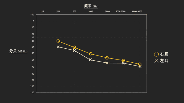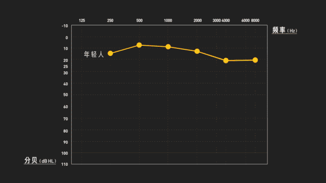 分別測量不同頻率的聲音,記下受試者的聽閾級,就能得到一張聽力圖。