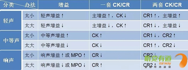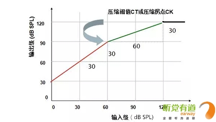 顧名思義,壓縮就是把超過一定強度的聲音減小至聽損患者縮小的殘余聽覺動態范圍里。相較于線性放大,壓縮可以有效達到“小聲聽得見,大聲受得了”的要求,尤其適用于感音神經性患者。</p><p> 壓縮參數主要有三個:壓縮拐點/壓縮閾值(CK/CT)、壓縮比(CR)與壓縮時間(起效時間AT,釋放時間RT)。下圖:橫坐標代表輸入級,即未經助聽器放大的聲音;縱坐標代表輸出級,即放大后的聲音。輸入與輸出的關系:輸出級=輸入級+增益,亦可表示:放大后的聲音=放大前的聲音+放大量。有了這個基礎,我們就可以清楚地理解這兩個參數的含義并進行調節。</p><p> 1、壓縮拐點(CK):線性放大與壓縮放大的臨界輸入級,此處為60 dB SPL,即輸入聲強度在60 dB SPL以下時為線性放大,超過60 dB SPL為壓縮放大。①紅線的輸入級范圍為0~60 dB,這段的聲音為線性放大,隨意找一個輸入級,用它對應的輸出級減去輸入級,得出線性放大的增益為30 dB;②當輸入級大于60 dB時,綠色曲線為壓縮放大,輸出與對應輸入的差值不再是30 dB,而是隨著輸入級增加,增益逐漸減小;③當輸出達到最大輸出限制時,輸出不再增大,保持在最大輸出限制位置。</p><p> </p><center><img alt="" src="/upfiles/201906120320158907.png" width="440" height="250" /></center><p></p><p> 2、壓縮比(CR):輸入級差值與輸出級差值的比值。上圖中線性狀態時壓縮比為1:1,可以找兩對數值,(輸入60-輸入0)/(輸出90-輸出30)=60/60=1:1。壓縮狀態時壓縮比為2:1,同樣可以找兩對數值,(輸入120-輸入60)/(輸出120-輸出90)=60/30=2:1。</p><p> 3、壓縮方式(CM):由于起效時間(AT)與釋放時間(RT)的不同組合構成不同的壓縮方式。</p><p> 助聽器由線性變換到壓縮時所需的穩定時間為起效時間。起效時間短,說明對大聲壓縮及時,不會造成聽力傷害;起效時間長,說明對大聲壓縮緩慢,有可能短暫感覺刺耳,但可以最大程度還原小聲與大聲的強度差異感。</p><p> 助聽器由壓縮回到線性時所需的穩定時間為釋放時間。釋放時間短,說明對小聲及時線性放大,避免小聲聽不見;釋放時間長,說明對小聲還在壓縮,放大不及時,有可能小聲聽不見,但可以最大程度還原大聲和小聲的強度差異感。</p><p> 我們可以做個比喻來了解壓縮的概念。假使你在高速路上,突然前方出現一個大大的警示牌,提示有事故發生,這時你需要迅速踩剎車以防撞擊。越早踩剎車相當于越早壓縮(壓縮拐點越小),剎車的力度越大相當于壓縮比越大,開始剎車至時速降至安全時速所需時間相當于起效時間,過了事故點踩油門,車速恢復至高速所需時間相當于釋放時間。</p><p> 壓縮是為了保護人們聽覺系統免受瞬間或持續中、大強度聲音的刺激,同時又能有效放大各種小聲的基本技術手段,可以使小聲、中等聲和大聲無一遺漏地進入聽障患者縮小的聽覺動態范圍中。</p><p> 恰當的壓縮拐點與壓縮比滿足了聽障患者達到“小聲聽得見、大聲受得了”的要求,而壓縮的起效時間與釋放時間設定需要考慮聽障患者個性化的聆聽喜好。</p><p> 起效時間與釋放時間都短,優點是小聲放大及時、大聲壓縮及時,即小聲聽得到大聲不覺吵,缺點是大小聲強度差異感不大;起效時間短釋放時間長,優點是大小聲強度差異感真實,音節間噪聲小,缺點是有可能小聲放大不足。</p><p> 事實上,各企業的助聽器軟件往往可以直接調節輕聲增益、中等聲增益、大聲增益與主增益而間接控制壓縮參數,有的軟件可見一套CK/CR,有的軟件可見兩套CK/CR。有些軟件會自動默認為自適應壓縮方式,能夠根據聲音強度差異自動調整。</p><p> 下圖匯總了對不同強度聲音不適的解決辦法,供大家參考。</p><p> </p><p><center><img alt="" src="/upfiles/201906120320202761.png" width="640" height="240" /></center><center><p style="text-align: left;"> 更多詳情請登錄聽覺有道助聽器m.padesign.cn</p><br /></center></p>" />