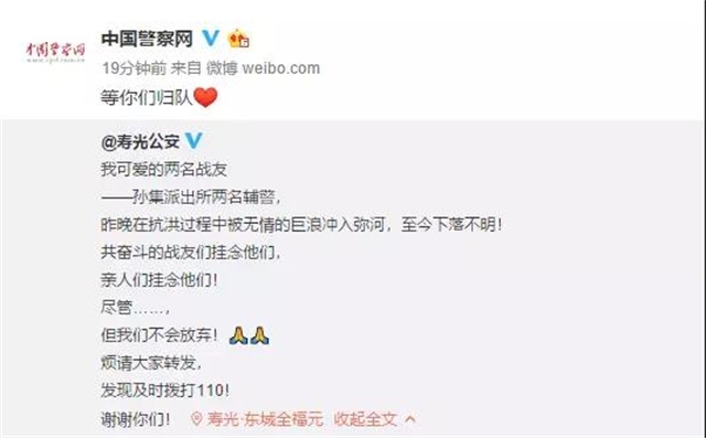 <span style="font-size: 16px;"> 2018年8月20日凌晨,壽光市兩名輔警在搶險救援時,被洪水沖走失聯。事發后,經過連續幾天的緊張搜救,他們以我們最不愿意看到的方式歸來了。</span></p><p><span style="font-size: 16px;"> 8月25日晚21時許,在彌河孫家集街道河段內發現一人,確認為孫家集派出所輔警魏澤坤同志(男,18周歲,因公殉職)。</span></p><p><span style="font-size: 16px;"> 8月28日下午16時,在彌河孫家集街道河段西岸發現另一名輔警,確認為孫家集派出所孫超同志(男,33歲,因公殉職)。</span></p><p><span style="font-size: 16px;"> 他是家里的頂梁柱啊</span></p><p><span style="font-size: 16px;"> 33歲的孫超是家里的頂梁柱,他的愛人郭立華是聽覺有道的店長。</span></p><p><span style="font-size: 16px;"> 孫超有一子一女,大女兒才滿10歲,父母年近60,身體都不是很好。還有一個85歲的老奶奶,身體也不好,孫超失蹤時,一家人一直都不敢告訴她消息。</span></p><p><span style="font-size: 16px;"> 18日早,因為下雨,孫超怕路不好走,還提前送郭店長到門店上班,然后才回派出所。</span></p><p><span style="font-size: 16px;"> 事發前2小時,他們夫妻互通了電話。孫超說,自己全身濕透了,水很大,11點之后,就沒有了音訊。</span></p><p><span style="font-size: 16px;"> 他們夫妻倆都是好員工,孫超還是共產黨員,他們沒有好好地拍過幾張全家福,甚至沒能抽空一家人好好玩一天。</span></p><p><span style="font-size: 16px;"> 孫超是個好老公,他一回家就看孩子,哄孩子睡覺,一有空就給老婆孩子洗衣服。為了省錢養家,他連幾十塊錢的鞋子都舍不得買,老婆給他買回來了,他還不舍得穿……</span></p><p><span style="font-size: 16px;"> 對于我們而言,郭店長和孫超都像家人一樣,我們多么期盼他是平平安安地回來。</span></p><p><span style="font-size: 16px;"> 化作春泥更護花</span></p><p><span style="font-size: 16px;"> 兩位輔警失蹤的幾天,我們看到了人們對英雄的珍惜。</span></p><p><span style="font-size: 16px;"> 濰坊市調集了1000多名警力、700多名沿河鎮街干部群眾、11支專業救援隊、18艘沖鋒舟、20架無人機、10頭搜救犬等,全線展開大范圍搜尋。</span></p><p><span style="font-size: 16px;"> 還有很多人民群眾,也自發參與了本次救援,總計6000多人,為了找到2個人,找了幾天幾夜,很多人都沒怎么好好睡覺。</span></p><p><span style="font-size: 16px;"> 他們最希望的,是把他們安全帶回來。反正無論如何,都要把他們找到。</span></p><p><center><img src="/upfiles/201808310437256664.jpg" alt="" /></center><center><br /></center><center> <img src="/upfiles/20180831043725120.jpg" alt="" /> </center><center><br /></center><center><img src="/upfiles/20180831043725884.jpg" alt="" /> </center><center><br /></center><center><img src="/upfiles/201808310437253890.jpg" alt="" /></center><center><br /></center><center> <img src="/upfiles/201808310437262486.jpg" alt="" /> </center><center><br /></center><center><img src="/upfiles/20180831043726269.jpg" alt="" /></center><center><br /></center><center> <img src="/upfiles/201808310437264172.jpg" alt="" /> </center><center><br /></center><center><img src="/upfiles/201808310437261506.jpg" alt="" /></center><center><br /></center><center> <img src="/upfiles/201808310437267495.jpg" alt="" /></center><center><br /></center><center> <img src="/upfiles/201808310437262138.jpg" alt="" /><span style="font-size: 16px;"> </span><span style="font-size: 16px;"> </span></center></p><p></p><p><span style="font-size: 16px;"> 而很多人,在各個地方關注著這一切。</span></p><p><span style="font-size: 16px;"> 他們可能身處中國的各個角落,平時有各自的愛好,從事著不同的職業,跟我們一樣,他們也都為兩位輔警擔憂過,祈禱過。</span></p><p><center><span style="font-size: 16px;"> <img src="/upfiles/201808310438352320.jpg" alt="" /> </span></center><center><span style="font-size: 16px;"><br /></span></center><center><span style="font-size: 16px;"><img src="/upfiles/201808310438359206.jpg" alt="" /></span></center><center><span style="font-size: 16px;"><br /></span></center><center><span style="font-size: 16px;"> <img src="/upfiles/201808310438359231.jpg" alt="" /></span></center></p><p></p><p><span style="font-size: 16px;"> 令人惋惜和哀痛的是,我們沒能等到想要的結局。但我們深知,兩位輔警并沒有徹底消失,在這片他們生活過的土地上,每一個角落都存在著他們的身影。</span></p><p><span style="font-size: 16px;"> 愿英雄安息</span></p><p><span style="font-size: 16px;"> 唯物者不信鬼神的存在,但兩位輔警的精神定與日月同輝;風雨飄搖盡顯英雄本色,被風雨洗禮的人們會記住孫超、魏澤坤這兩個名字,因為他們生命的最后一刻,始終代表著人民的名義。</span></p><p><span style="font-size: 16px;"> 兩位英雄,他們為了搶險救援,離開了人世。</span></p><p><span style="font-size: 16px;"> 他們把最美好的青春歲月獻給了警營,留給了老百姓,卻還沒來得及跟自己的家人說一聲再見,多么令人哀痛和讓人崇敬!</span></p><p style="text-align: center;"><span style="font-size: 16px;"><img src="/upfiles/201808310439091398.jpg" alt="" /></span></p><p style="text-align: center;"><span style="font-size: 16px;"><br /></span></p><p style="text-align: center;"><span style="font-size: 16px;"> <img src="/upfiles/201808310439095302.jpg" alt="" /></span></p><p style="text-align: center;"><span style="font-size: 16px;"><br /></span></p><p style="text-align: center;"><span style="font-size: 16px;"> <img src="/upfiles/201808310439092187.jpg" alt="" /> <br /></span></p><p></p><p><span style="font-size: 16px;"> 他們的親人會記住他們,國家會記住他們,我們會記住他